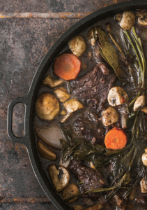Говеждо задушено със зеленчуци и червено вино