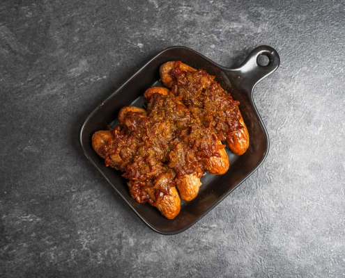Къривурст - традиционна немска наденичка, приготвена от свинско месо и подправки, идеална за грил или пържене.