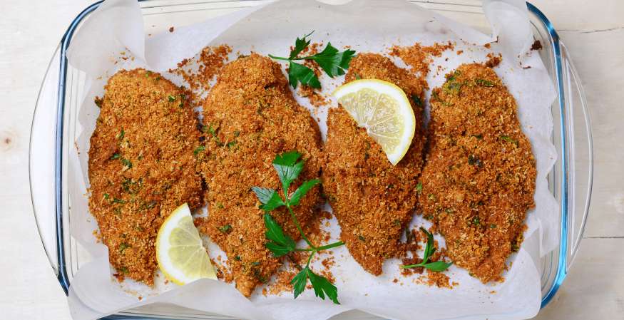 Пиле с пармезан – крехко и ароматно ястие с хрупкава коричка и кремообразна текстура, което носи уют и вкус във всяка хапка.