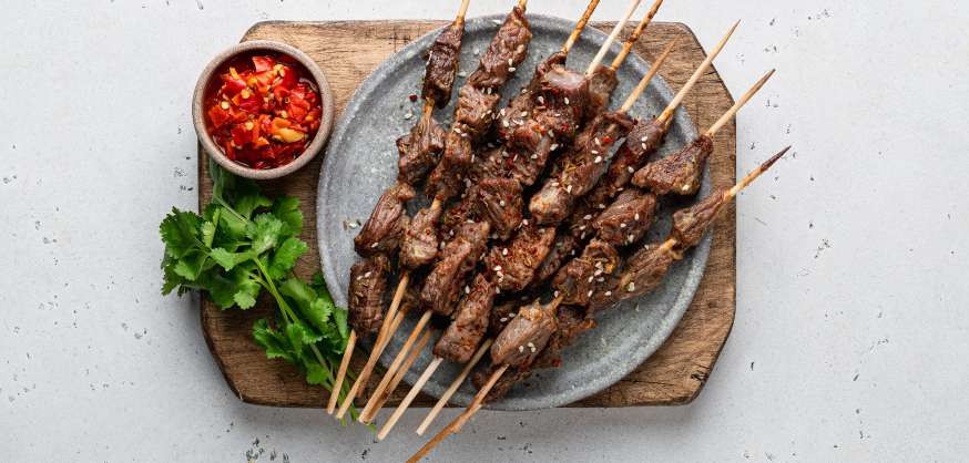 Преливащи от вкус – тайландски шишчета с говеждо и свеж босилек.