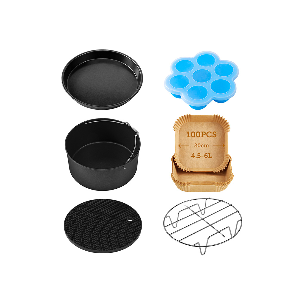 Направете вашия фритюрник с горещ въздух още по-функционален с комплекта аксесоари Cosori. Пригответе всяка рецепта с помощта на висококачествените тава за пица, тава за печене, хартиени подложки, грил решетка, силиконова форма за мъфини и яйца и силиконова подложка. А почистването е бързо и лесно, както на ръка, така и в миялна машина.