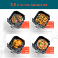 Висококачествените материали осигуряват здравина и дълготрайност, а елегантният дизайн на еър фрайъра изглежда чудесно на кухненския плот, без да заема излишно пространство в зоната за приготвяне на храна.