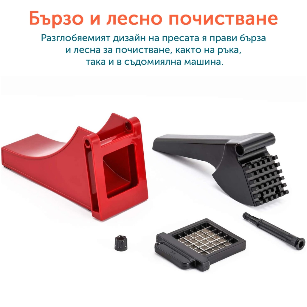 Пресата е подходяща за различни видове зеленчуци като картофи, краставици, лук, тиквички, сладки картофи и др. Насладете се на професионално и бързо рязане във вашата кухня.