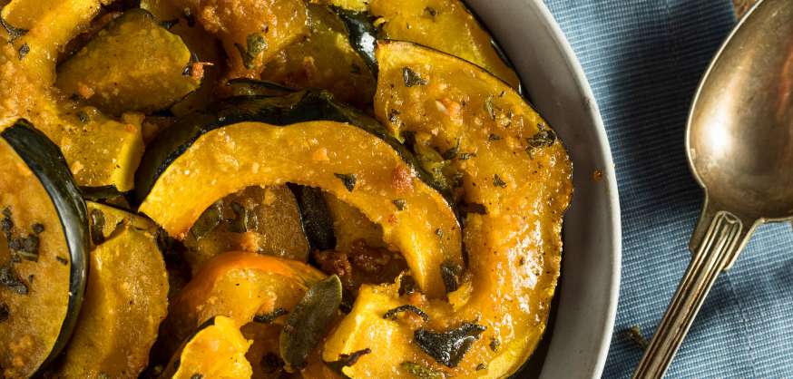 Тиква с пармезан и мащерка – уютна комбинация от сладост и аромат, идеална за всяко сезонно ястие.