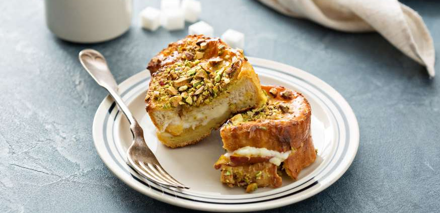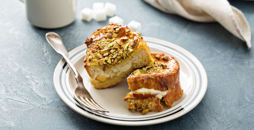 Потопете пълнените френски тостове в яйчената смес за 10 секунди от всяка страна.