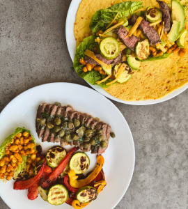 Мека тортила, сочно пържен стек и свежи зеленчуци – съвършената смес от вкус и текстура.